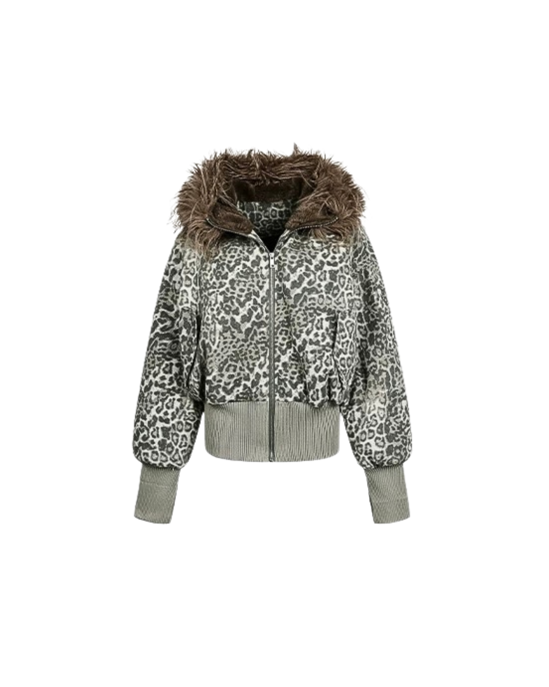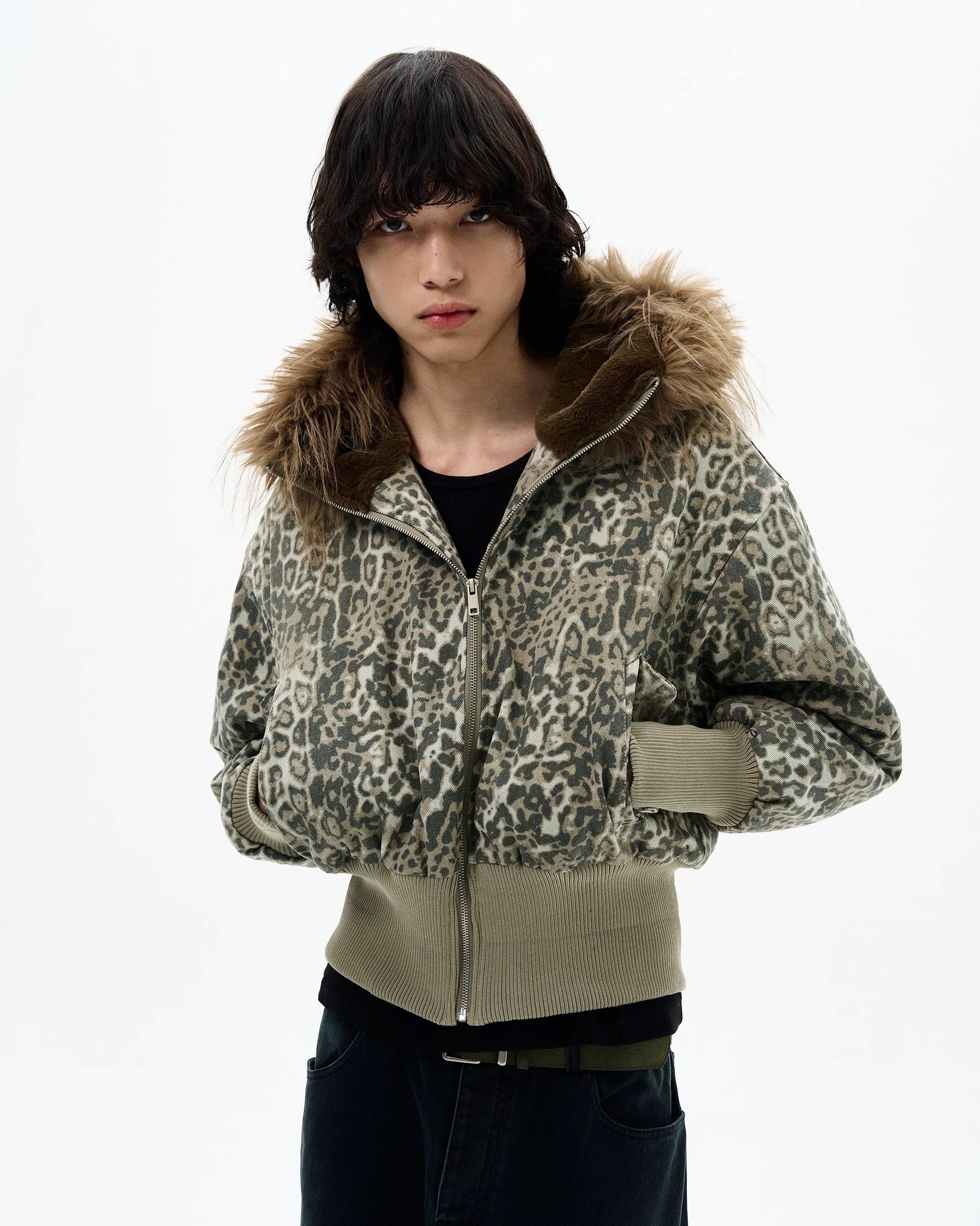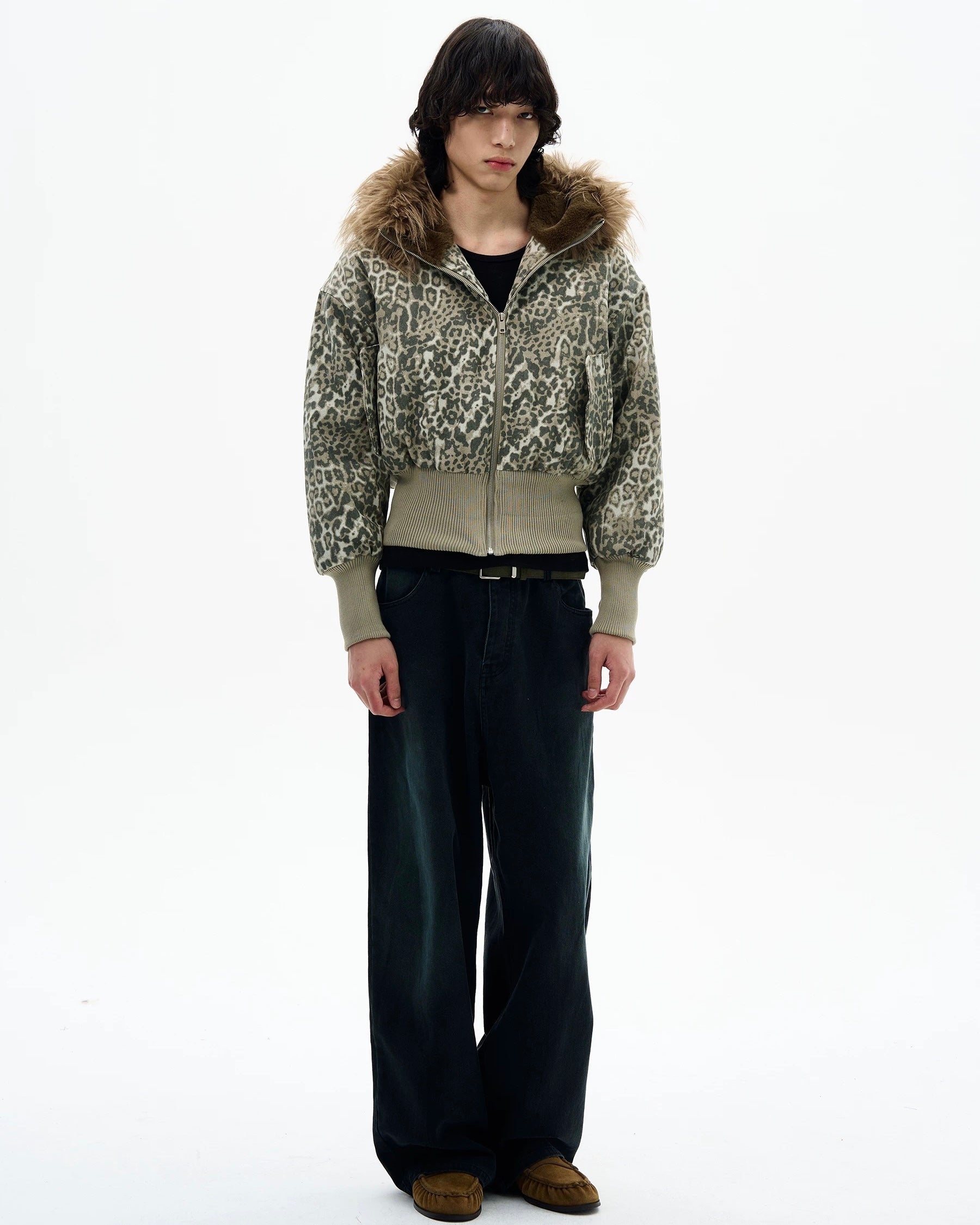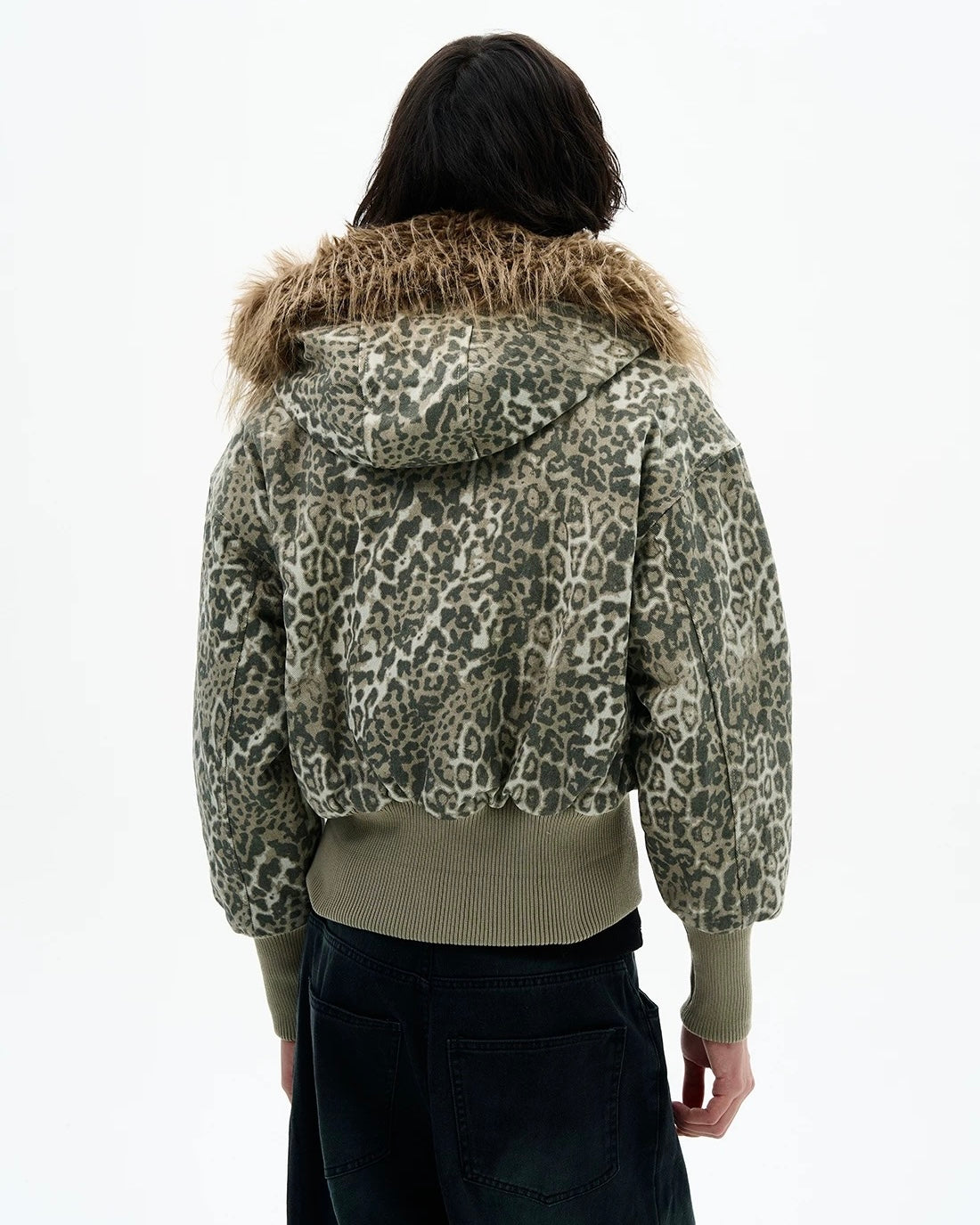 Leopard Fur Hood Bomber