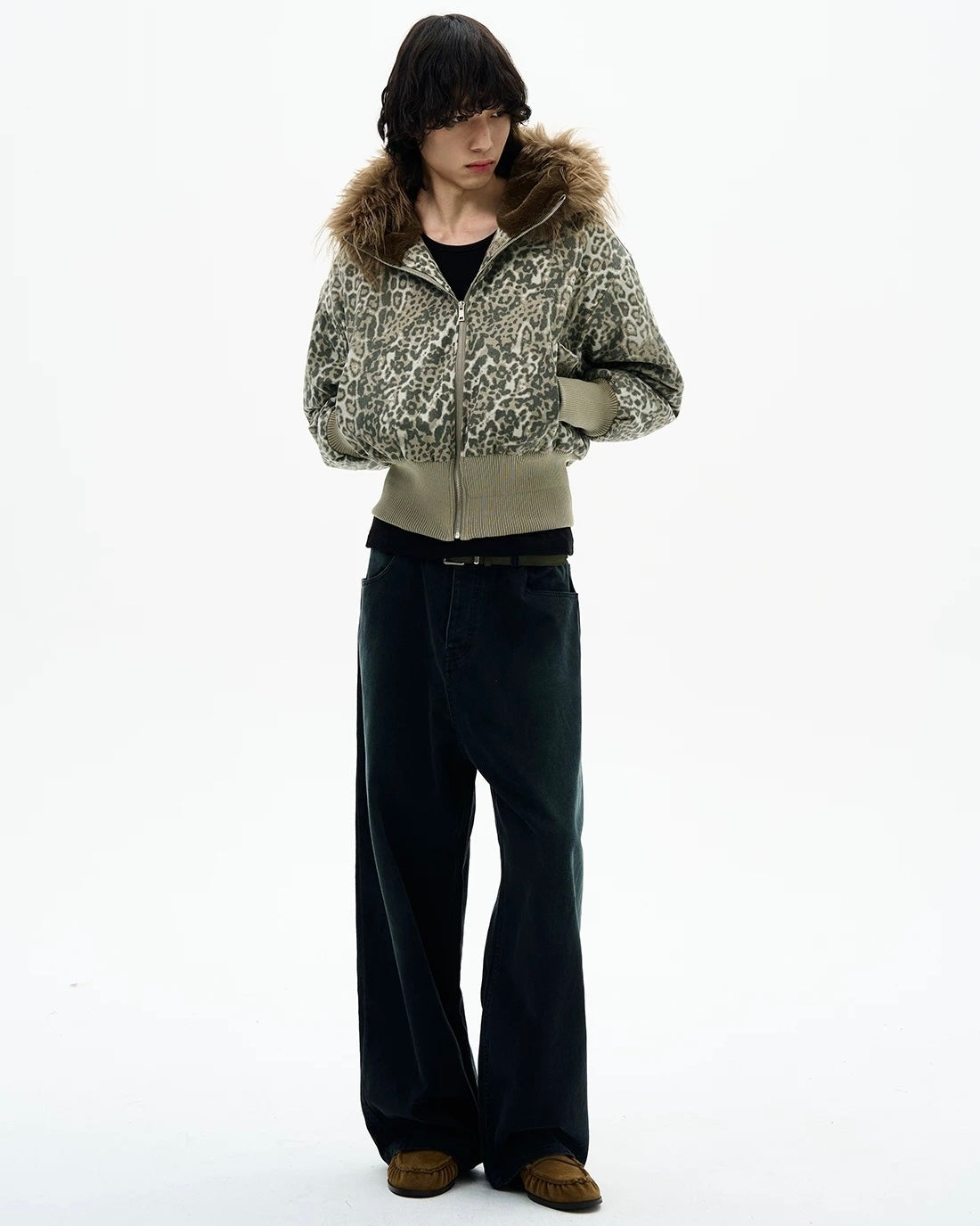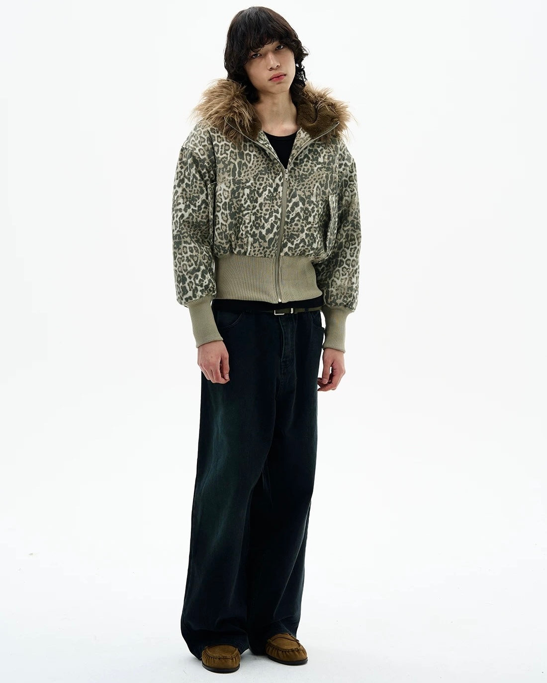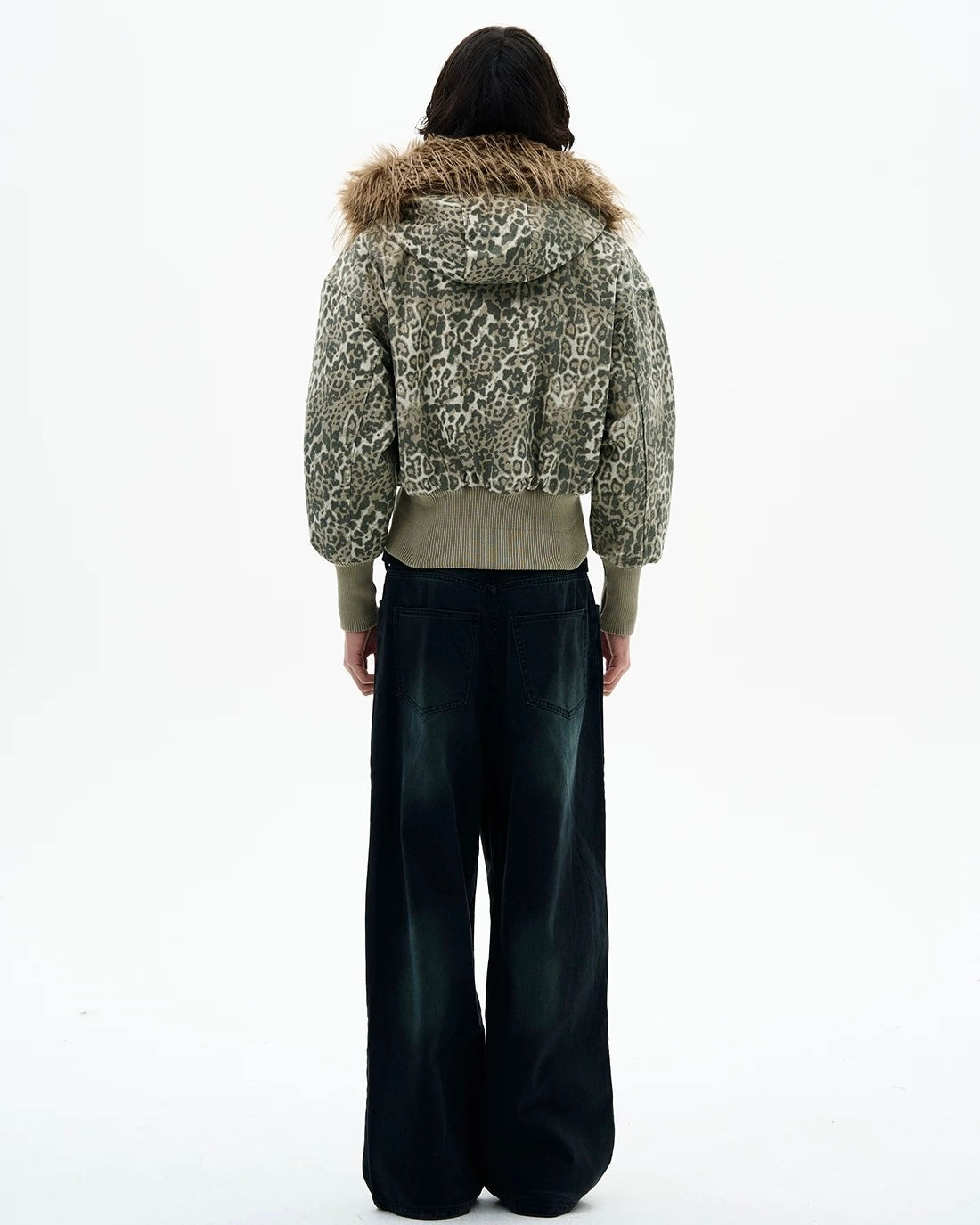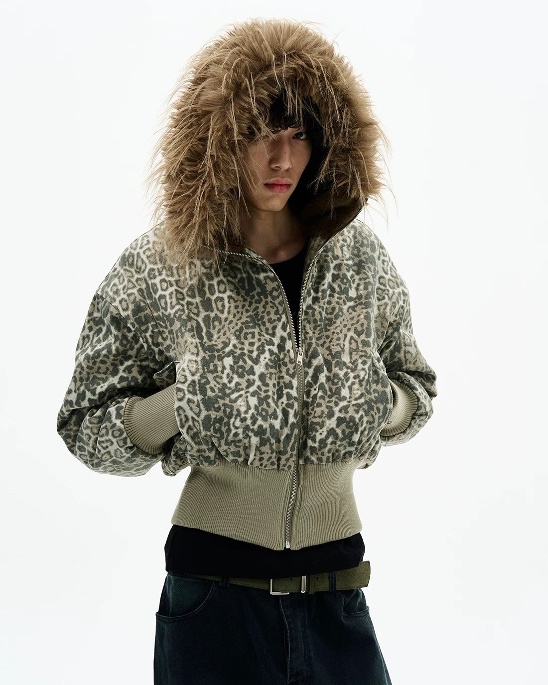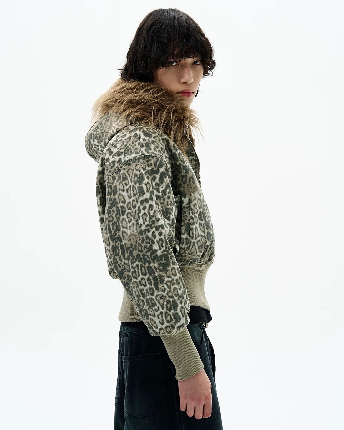 Leopard Fur Hood Bomber