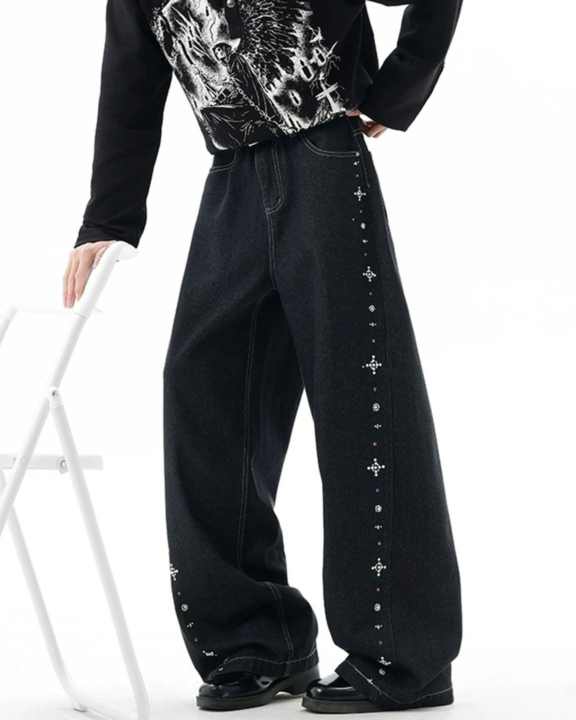 Cross Stud Wide Denim