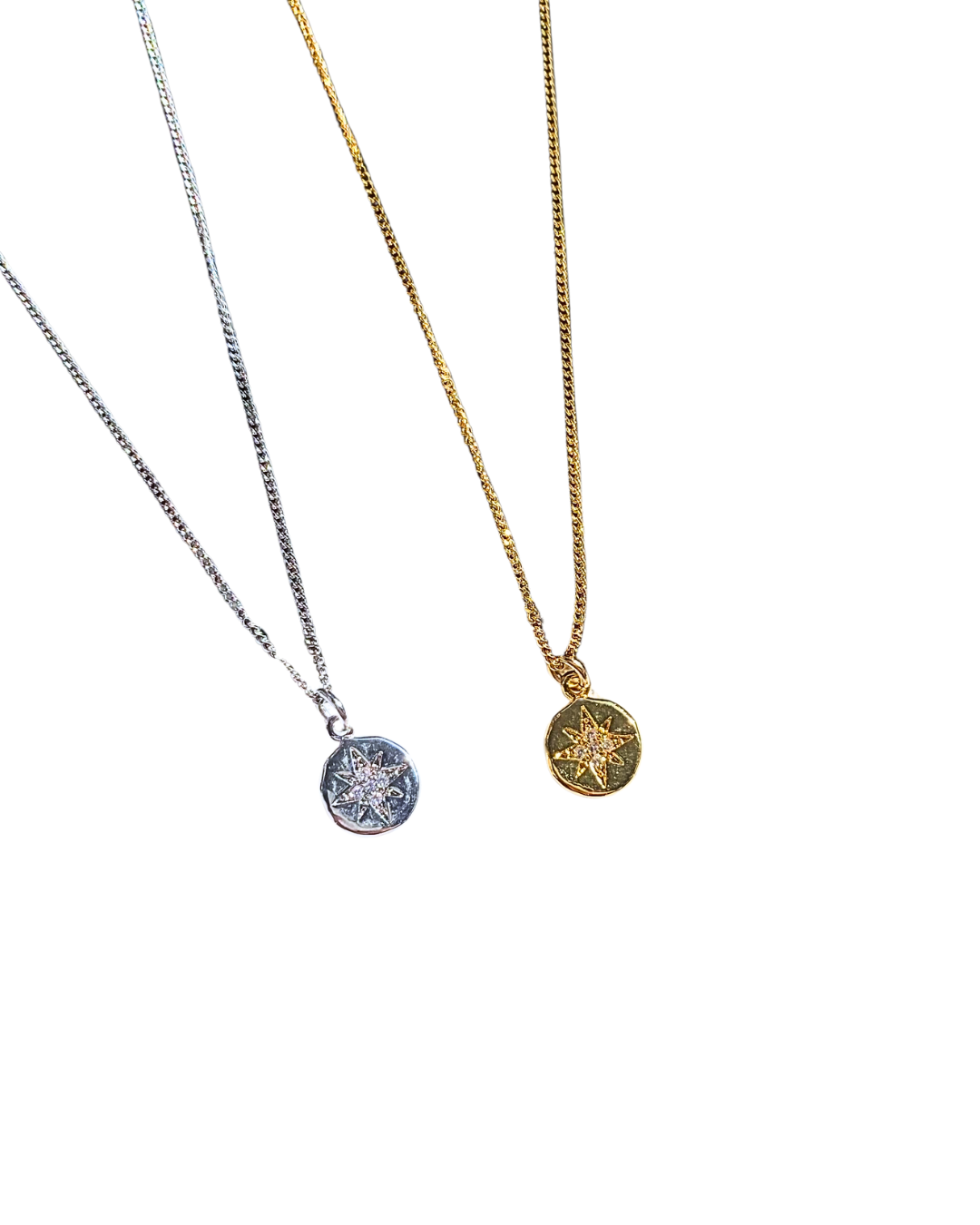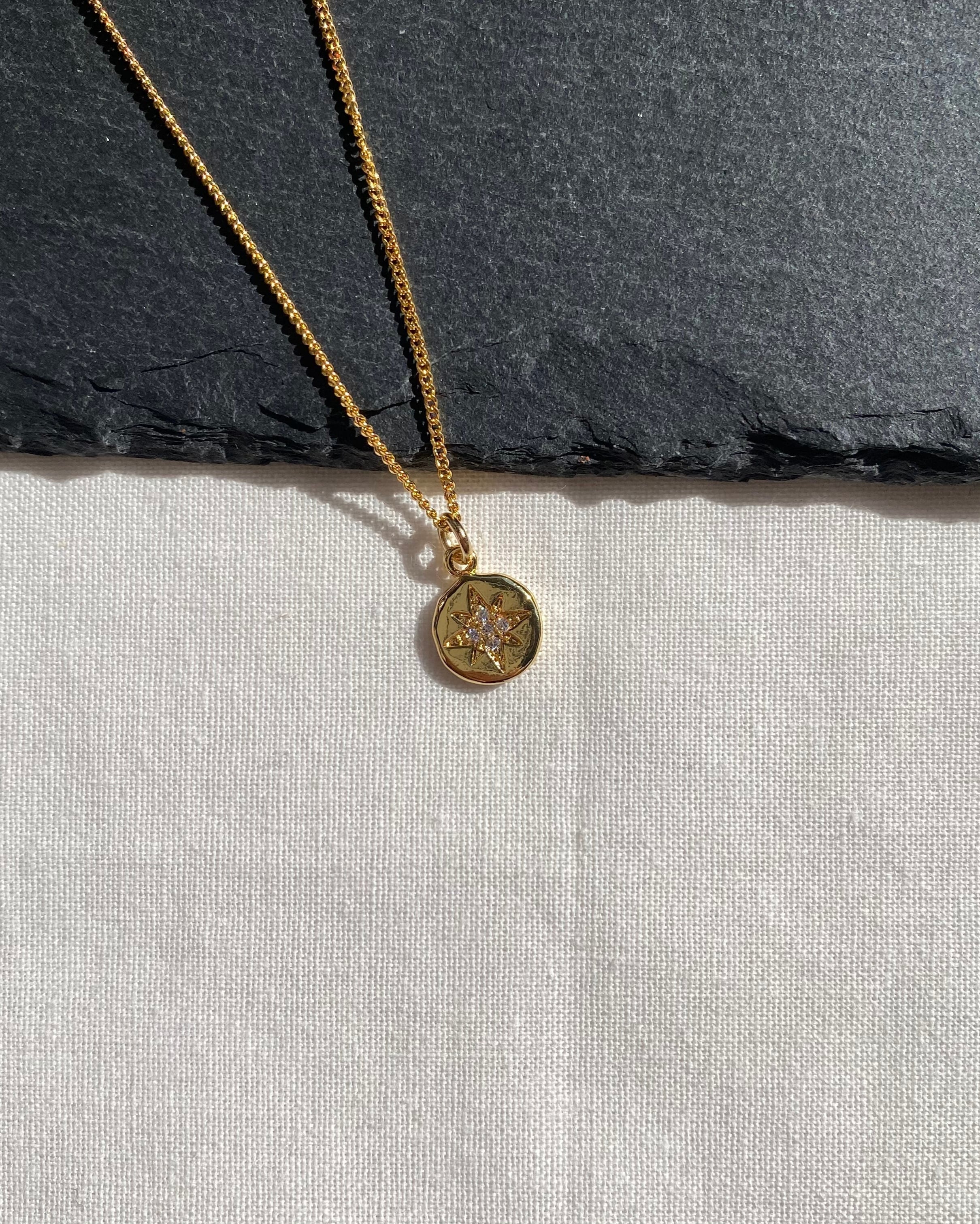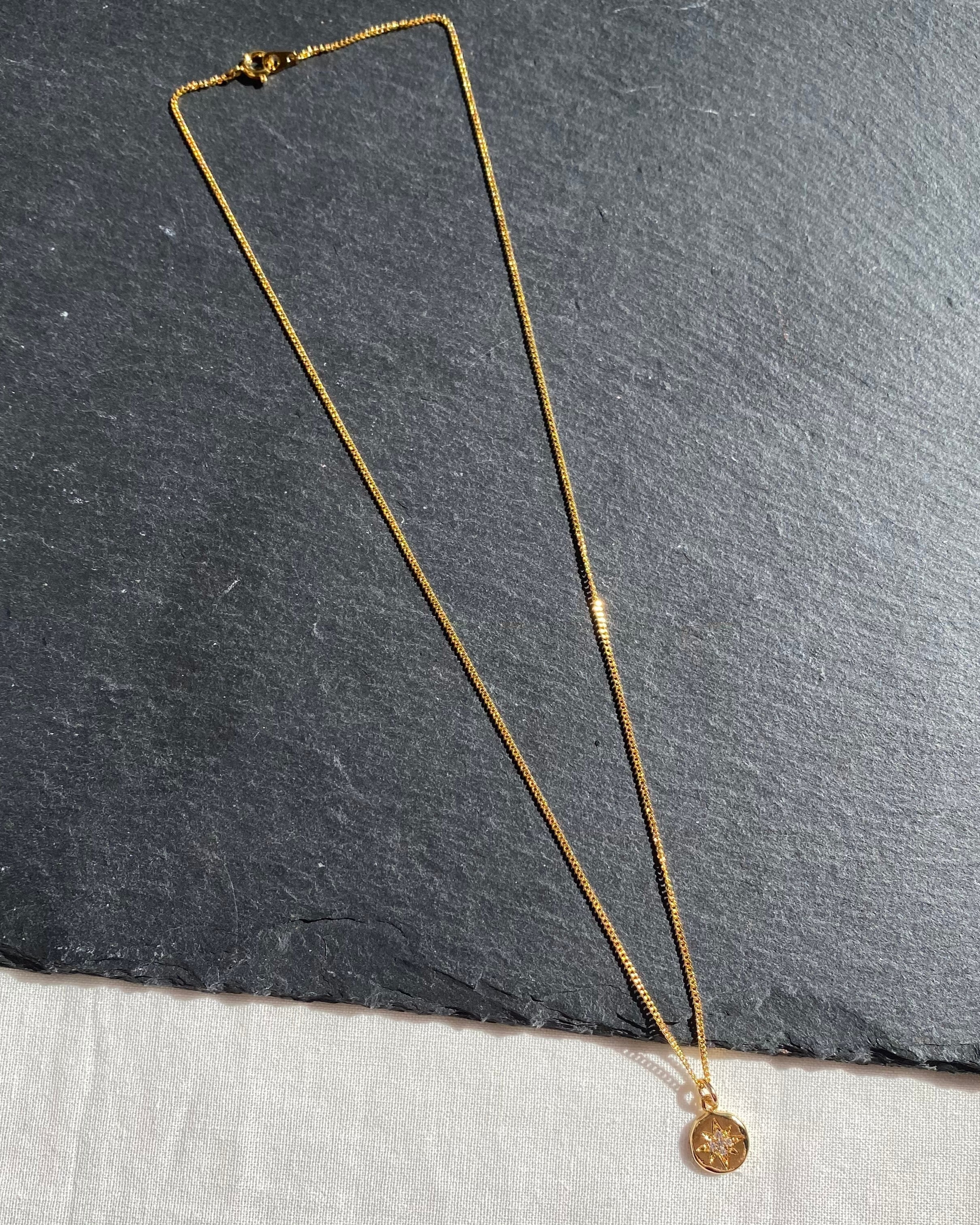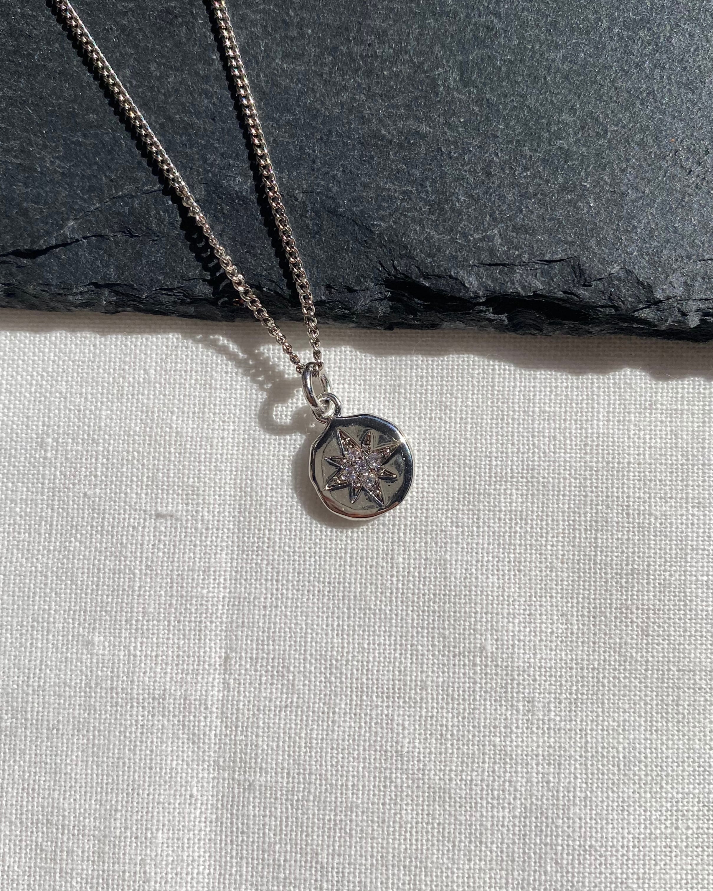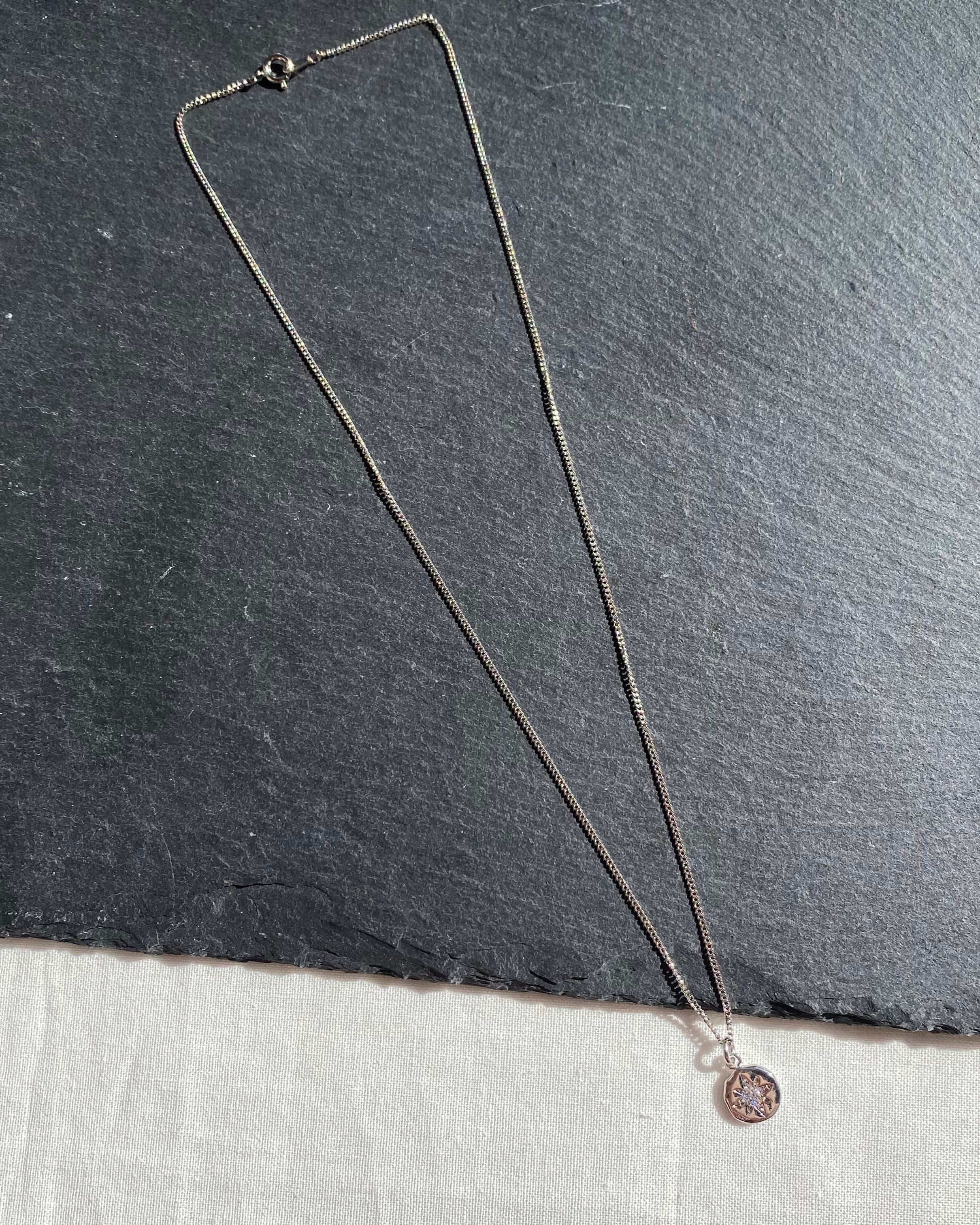 キュービックジルコニアが施されたチャームが魅力のネックレス。