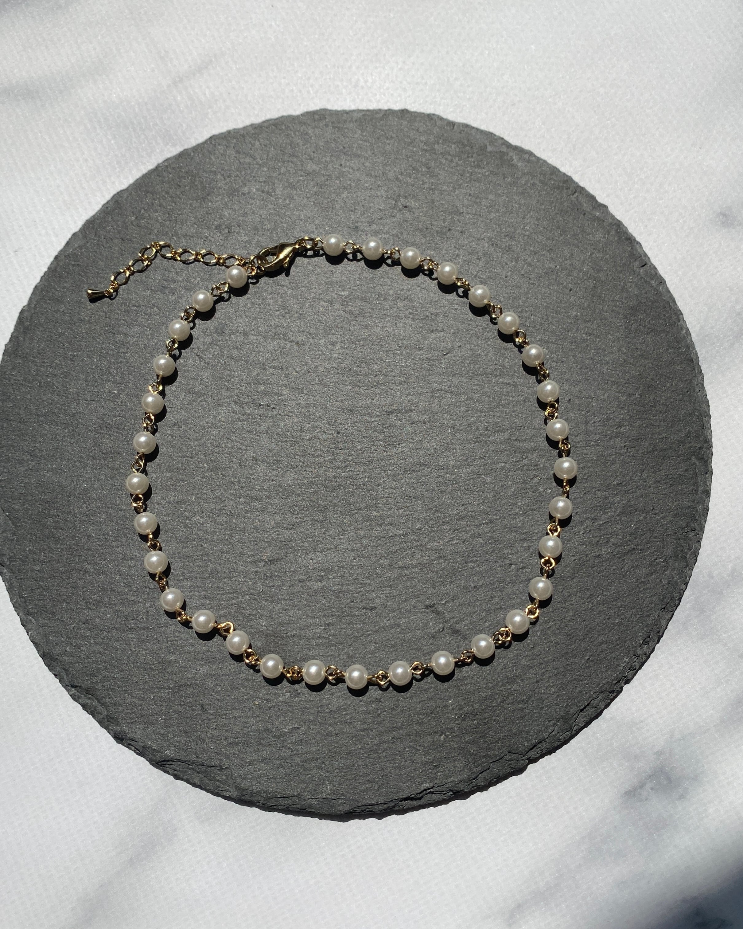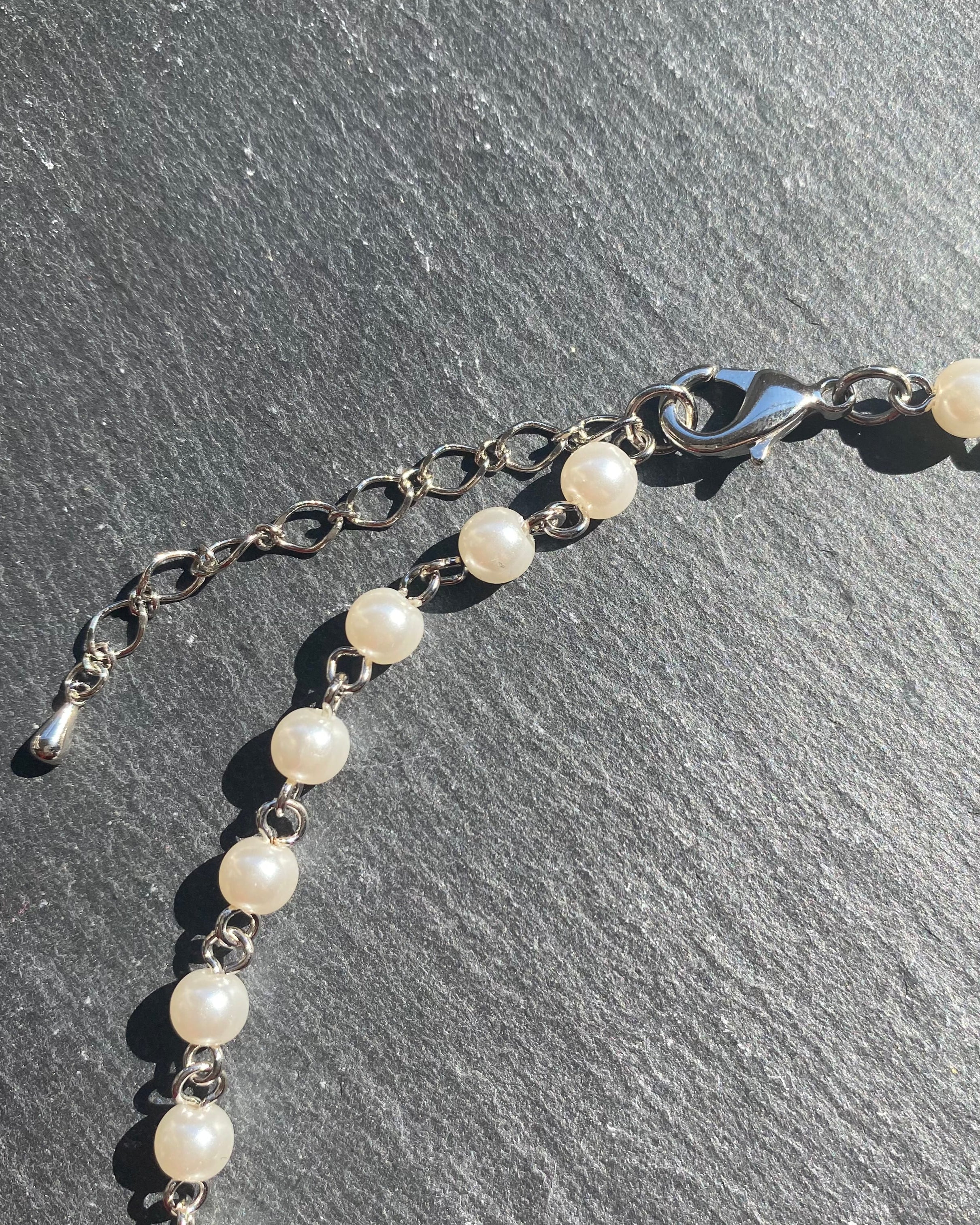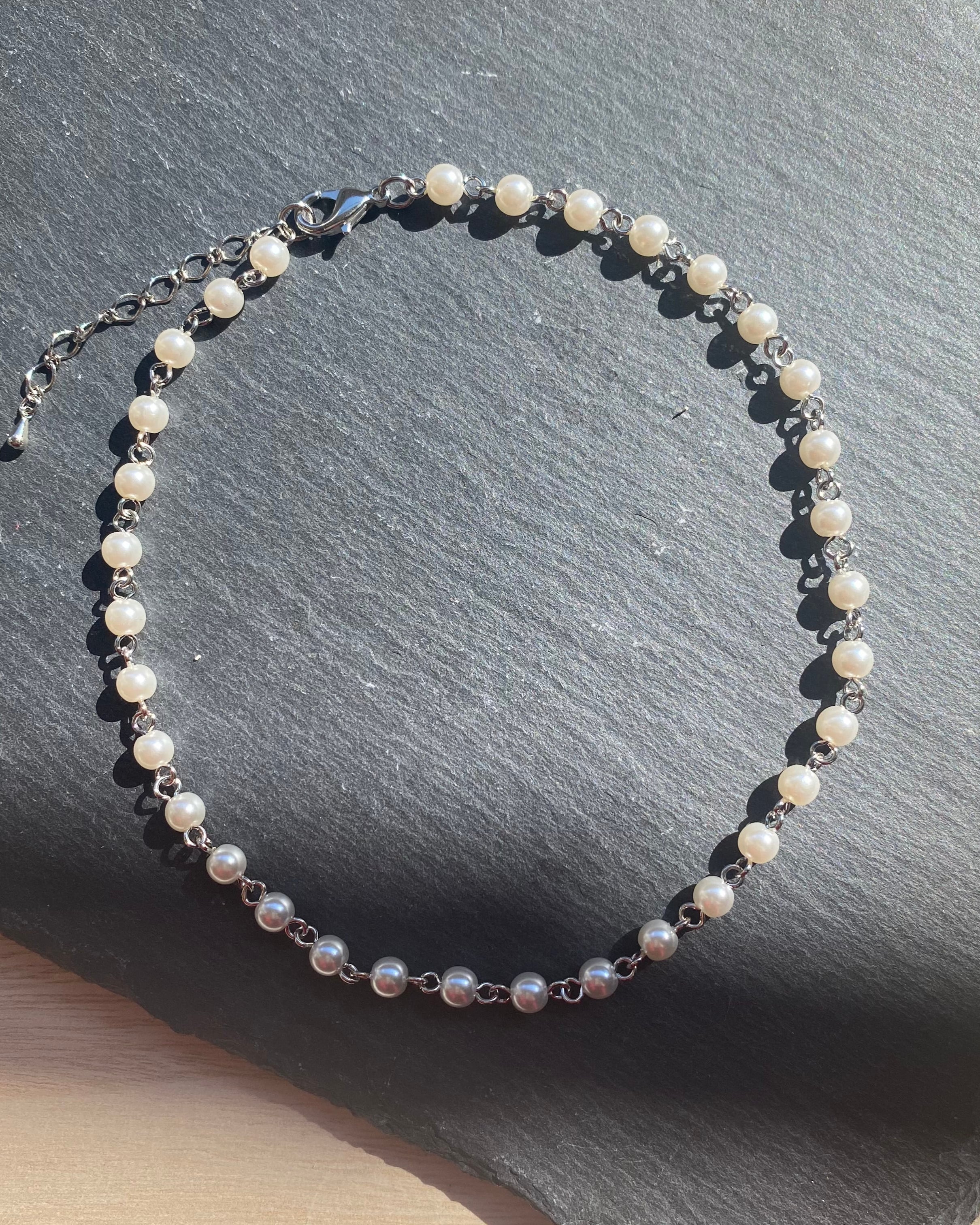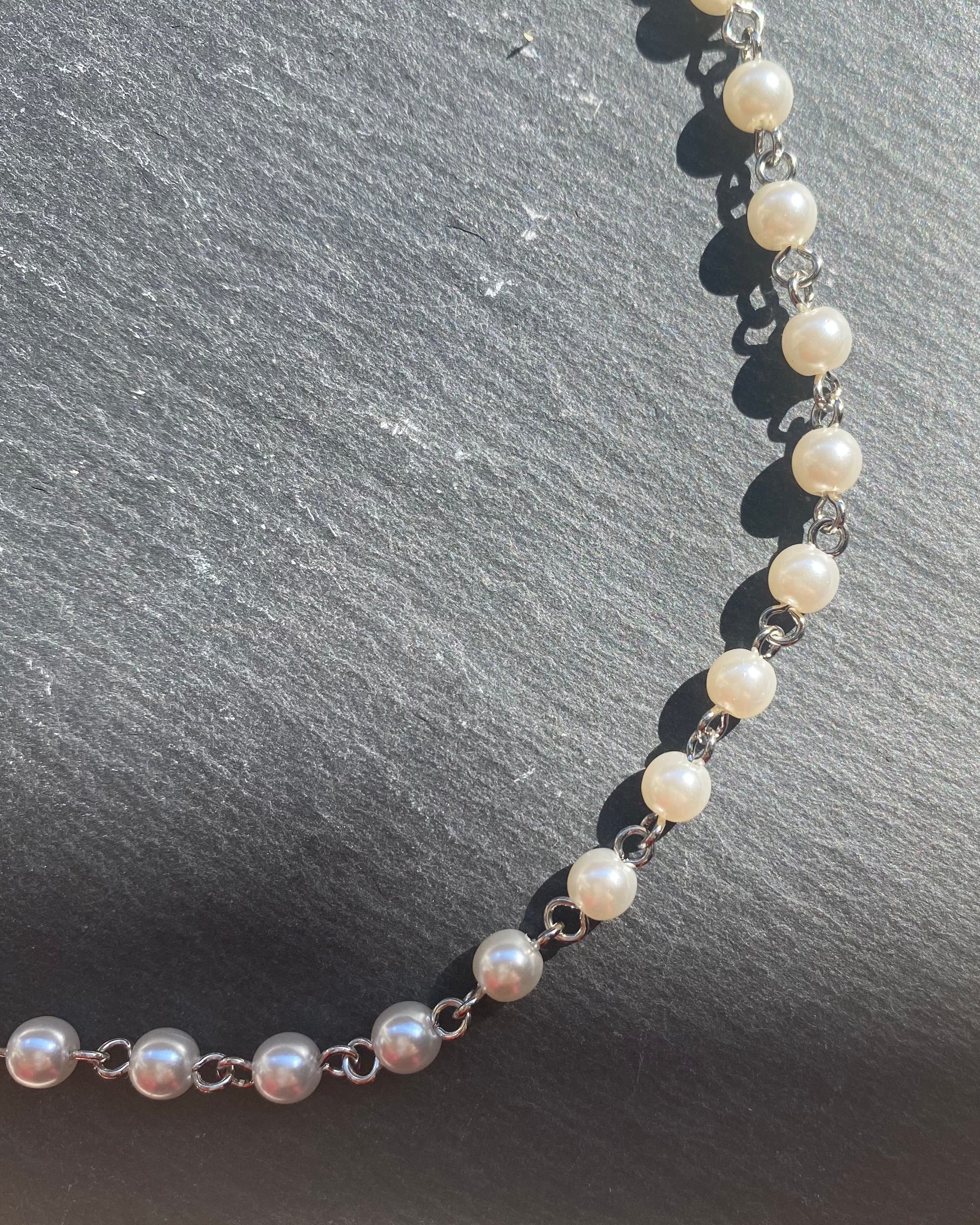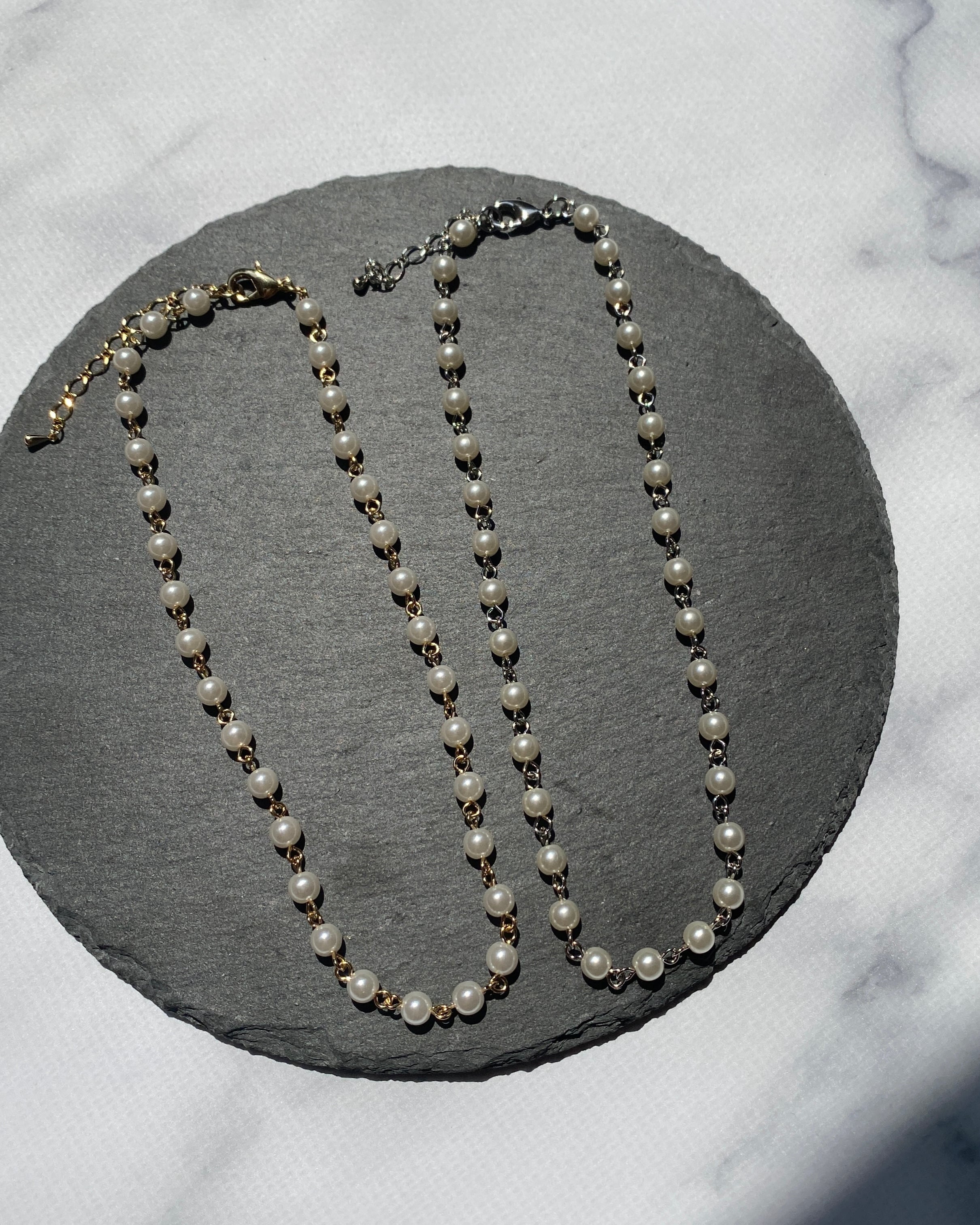 「Pearl mood」よりも小ぶりで、短めチェーンのパールネックレスです。