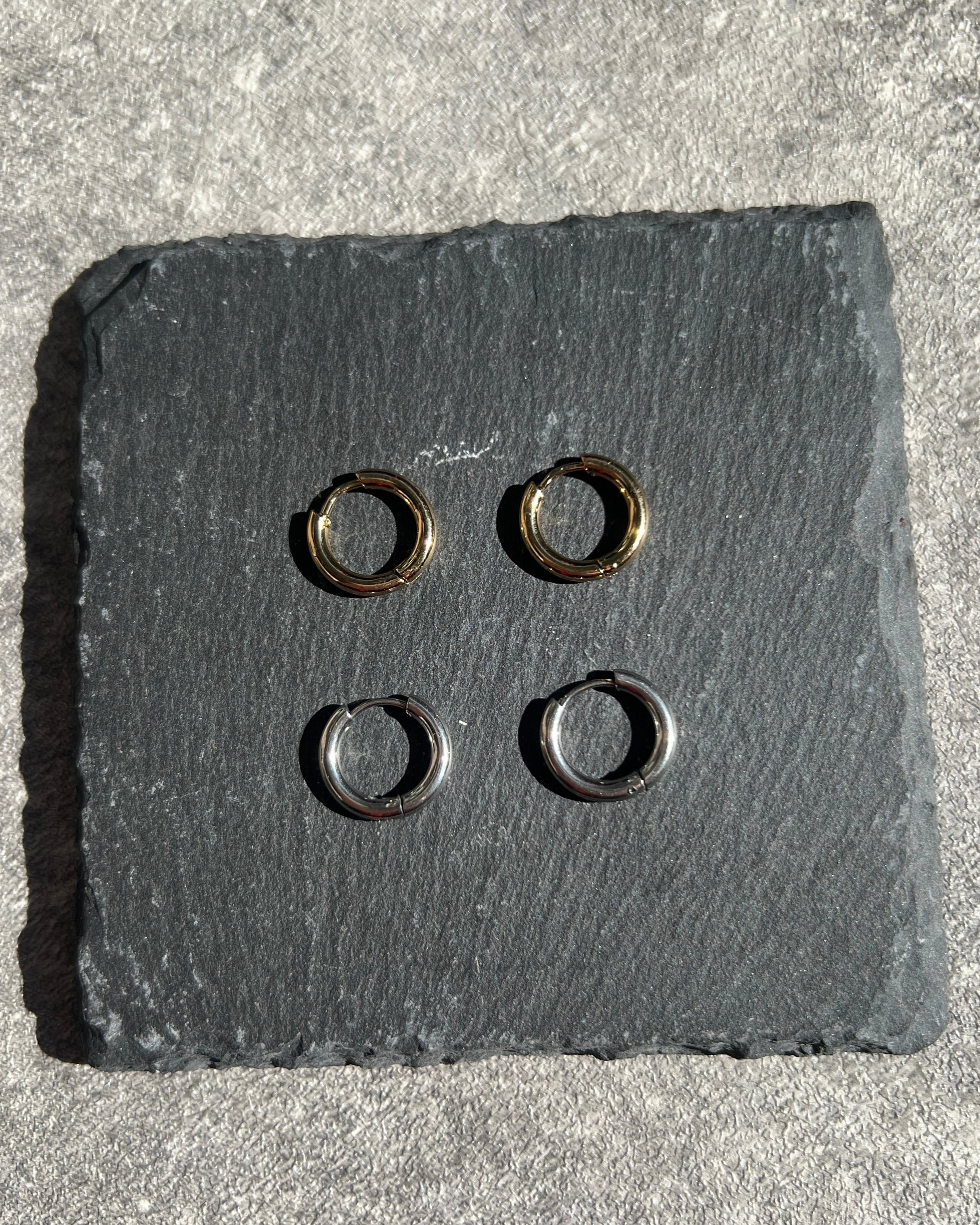 シンプルで定番デザインの男女兼用のフープピアスです。