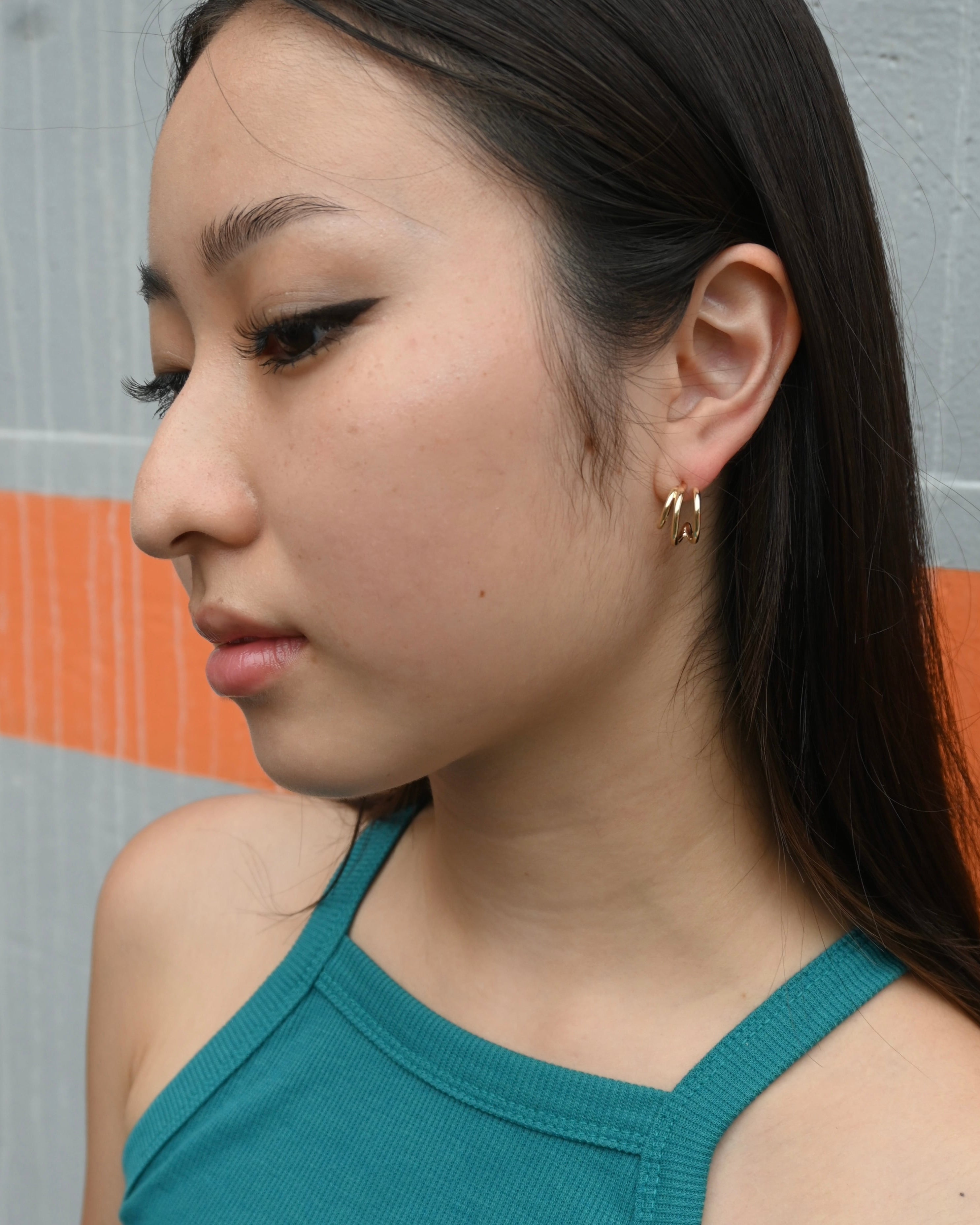 トレンドの3連ピアス。